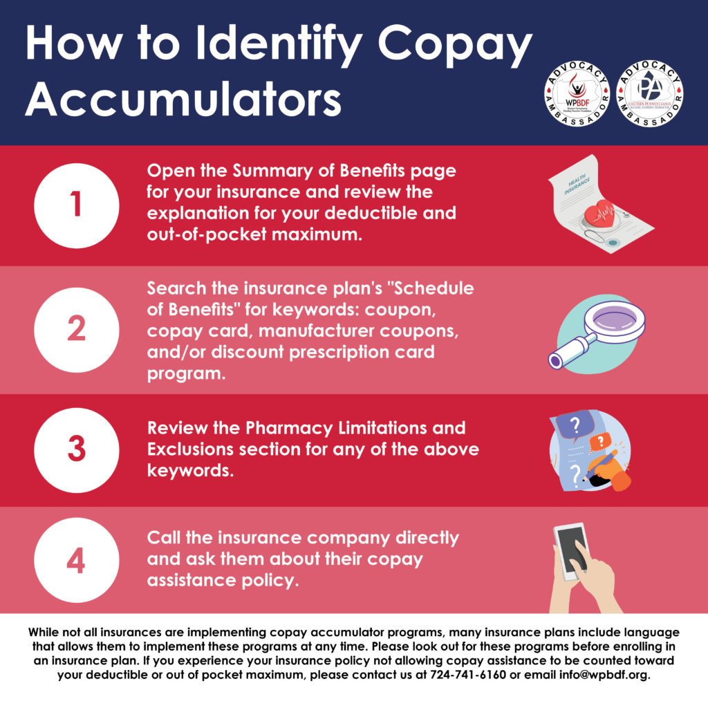Insurers use copay accumulators to accept third-party copay assistance for a patient’s medication without counting these payments towards a patient’s cost-sharing obligations, lulling patients into a false sense of security before hitting them with bills running into the thousands of dollars for essential medications that patients often cannot afford alone. As you are enrolling in health insurance coverage, here are some points to help you identify copay accumulators. If you experience your insurance not allowing copay assistance to be counted toward your deductible or out of pocket maximum, please contact us at 724-741-6160 or info@wpbdf.org.