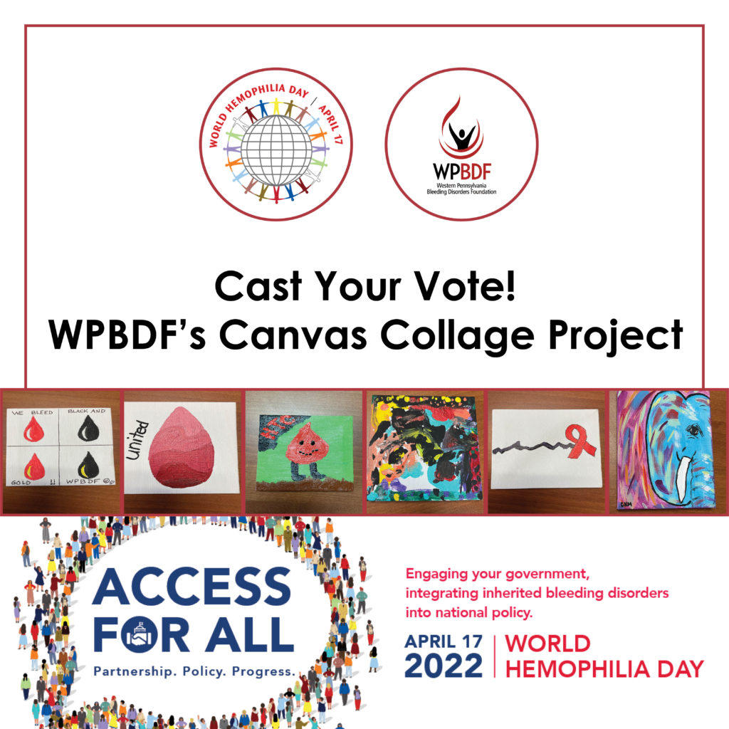 WPBDF will unveil the completed collage on World Hemophilia Day! Check out the amazing canvases made by the Western PA Bleeding Disorder community! Voting ends on April 16th at midnight and the winner will be announced via social media and email on World Hemophilia Day!