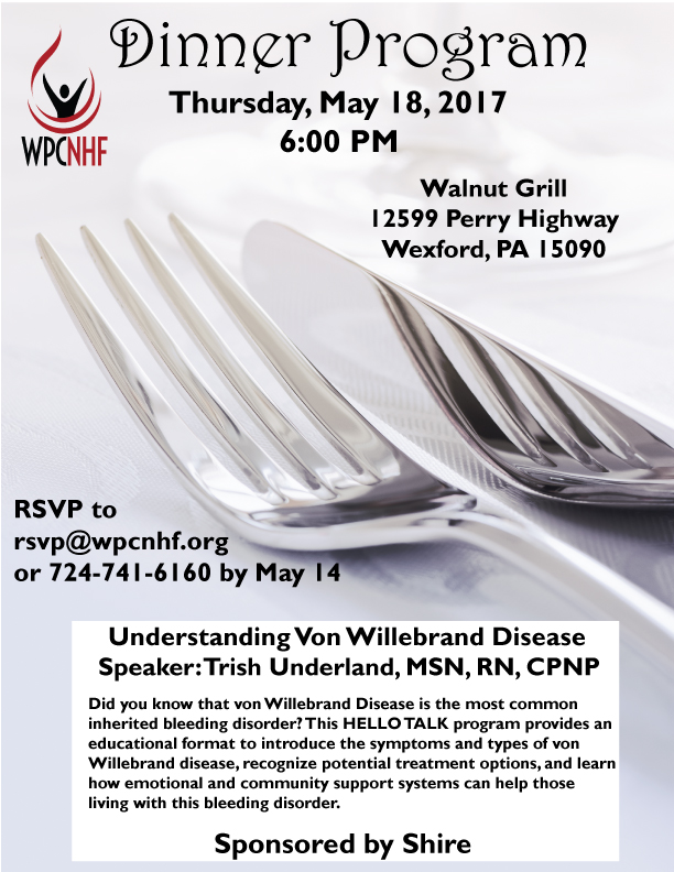 This vWD Dinner Program will now be held at Walnut Grill in Wexford, PA.